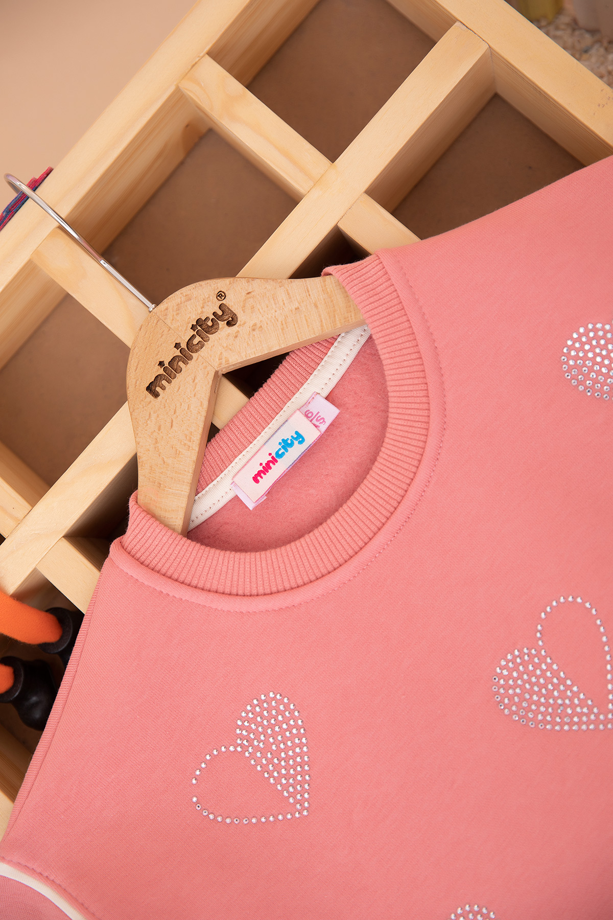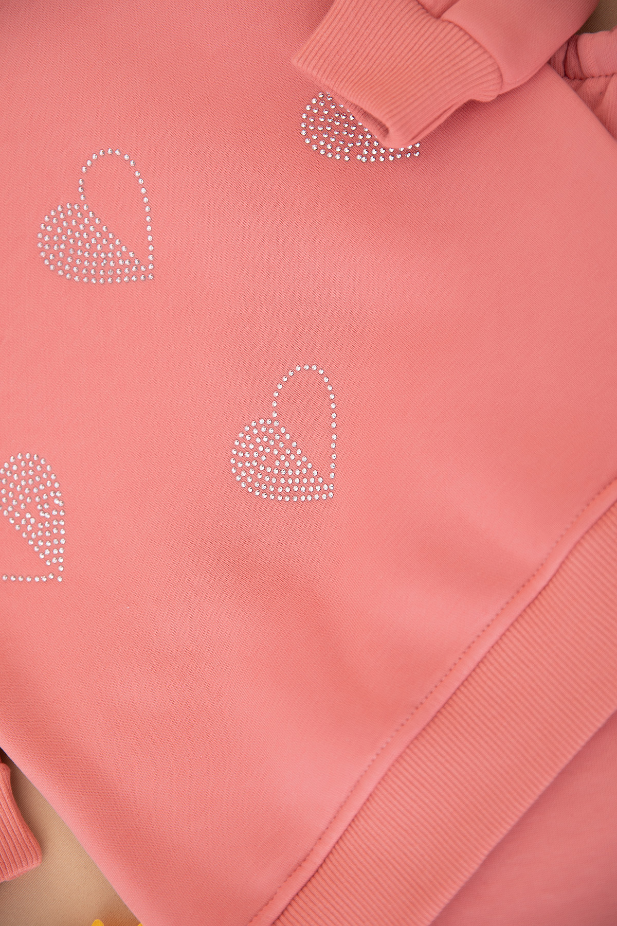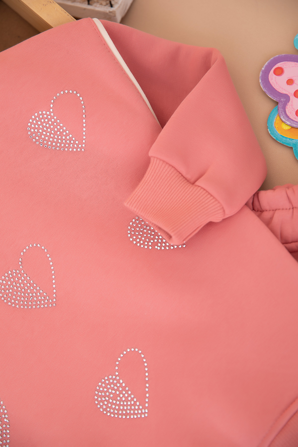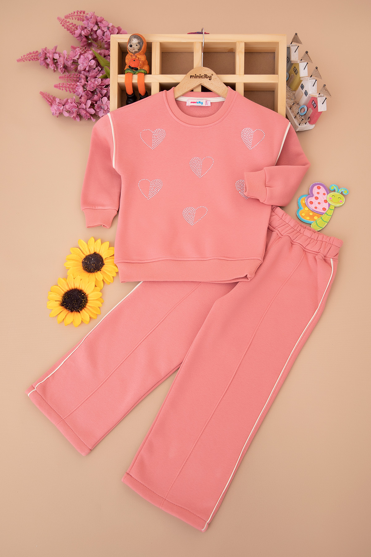 Kız ÇocukTaşlı Kalp Nakışlı Üçip Takım - (5-12 Yaş)