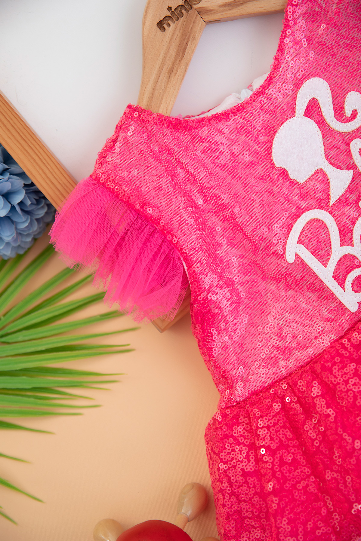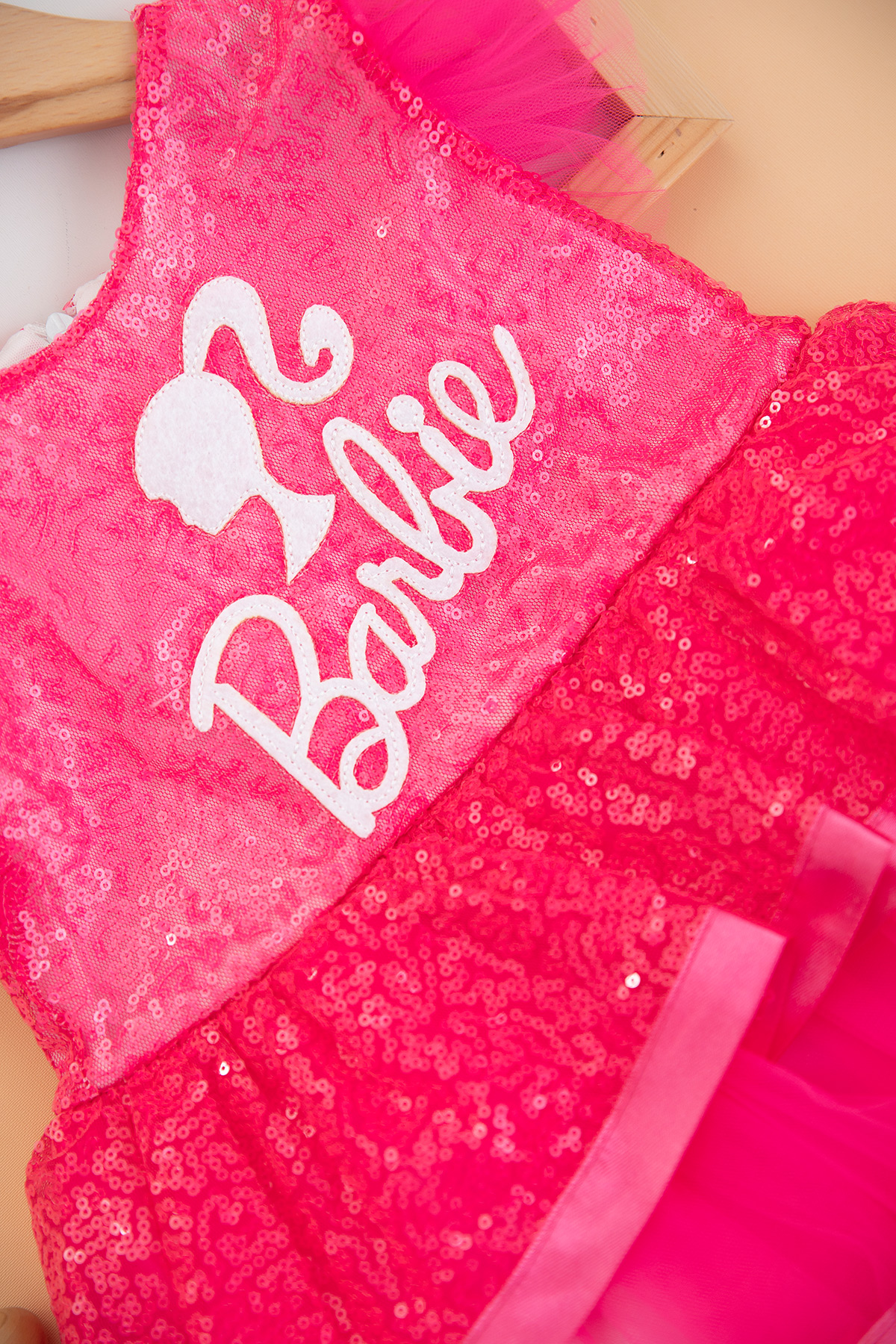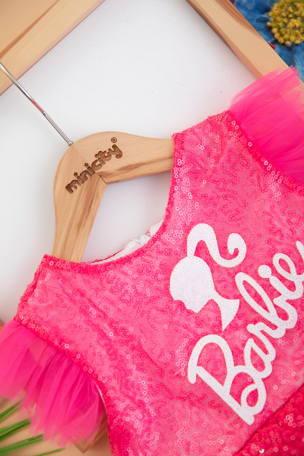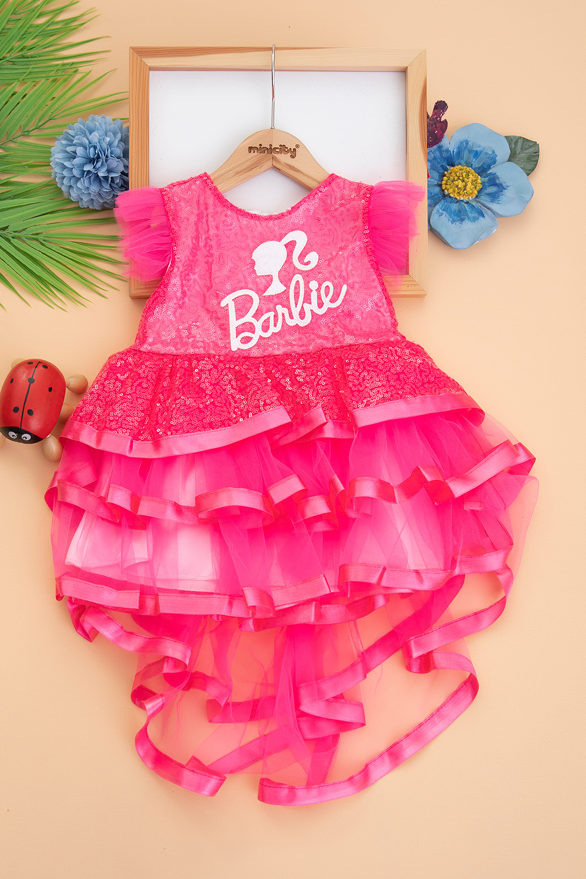 Kız Çocuk Kuyruklu Barbie Nakışlı Elbise - 878 (2-5 Yaş)