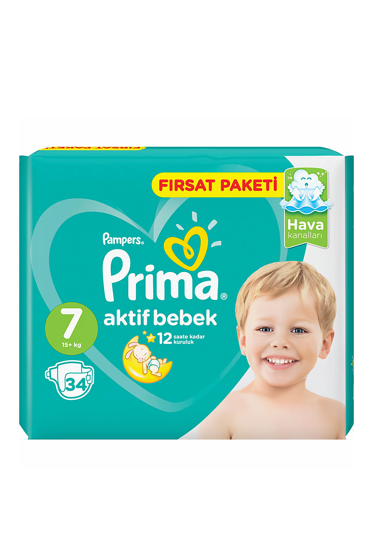 Prima Bebek Bezi Aktif Bebek No:7 Fırsat Paketi 34 Adet 15+ Kg